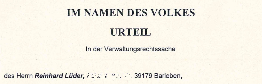 Dass der Richter die Beurteilung der Tätigkeit von Herrn Lüder als Techniker für die millionenschweren Sporthallen (zwei Dreifeldhallen Barleben und eine Zweifeldhalle in Ebendorf) lediglich als „Mann für alle Fälle“ – wie von Herrn Lüder vorgetragen – teilte, nehmen wir zur Kenntnis. Die Mehrheit des Gemeinderates (aus CDU, Linke und FW) sah das allerdings aus Kenntnis und Sichtweise vor Ort in zwei unterschiedlichen Abstimmungen anders.