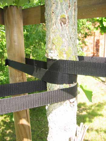 Hier scheint auf den ersten Blick alles in bester Ordnung, aber eben nur auf den ersten Blick…Neu angepflanzte Bäume benötigen in den ersten Jahren eine besondere Pflege. In der Vegetationsphase wässern, später ggf einen Erziehungsschnitt. Obwohl sich bei diesem Thema die Geister scheiden, spielt dieser für Straßenbäume selten eine Rolle. Wichtiger ist da schon der Schutz gegen extreme Temperaturunterschiede am Stamm und auch der Schutz gegen Windlast. In Barleben werden diese Erstmaßnahmen fast immer in vorbildlicher Weise vorgenommen. Dann, nach einigen Jahren scheint das Interesse zu verblassen. Anders kann ich die Folgen der Gurtbänder nicht interpretieren. Auf dem ersten Bild schon fast erkennbar, wird es auf der zweiten Abbildung dann deutlich. Es wird aller höchste Zeit das die Gurtbänder wegkommen. Der Baum wird stark eingeschnürt und der gut gemeinte Schutz wird zum Gefängnis.
